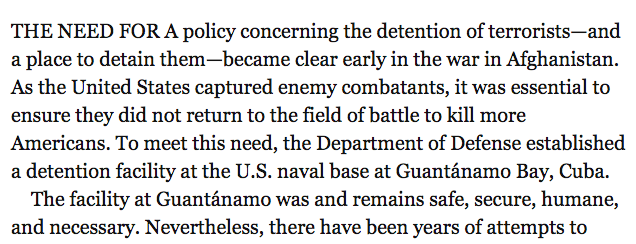 The part where he talks about how awesome Guantanamo Bay is
