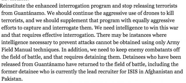 The part where he says we should resume waterboarding and other forms of torture