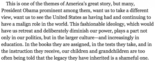 The part where he suggests Obama doesn’t like America very much and kids are being indoctrinated to think like him