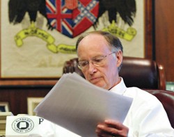 Arizona’s immigration law — SB-1070 — is no longer the toughest immigration law in America. Today, Alabama Gov. Robert Bentley (R) signed a bill into law that goes several steps farther. “I campaigned for the toughest immigration laws and I’m proud of the Legislature for working tirelessly to create the strongest immigration bill in the country,” boasted Bentley.