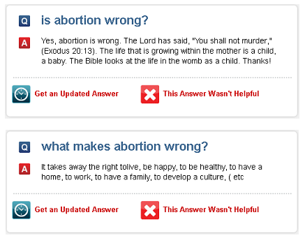 Iris — Siri spelled backwards — is the popular electronic assistant available for Android phones. It’s been downloaded over 1 million times and is powered by ChaCha, the Internet’s “leading answers service with more than a billion questions answered.” In other words, Iris may be a knockoff, but it’s no joke. That’s why we were surprised when we saw the Family Research Council crowing about the Android being “as pro-life as they come” and watched their video…Iris’ answers are drawn from ChaCha, which provided a string of anti-choice answers to our questions: