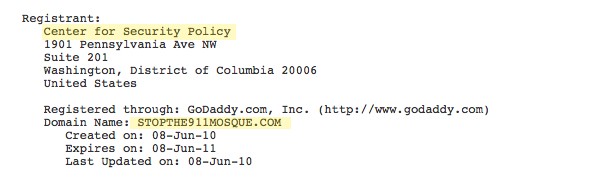 Naturally, right-wing opponents of the mosque blasted Pelosi for the comments, claiming the opposition is an organic, spontaneous uprising of concerned Americans. However, the coalition leading the charge against the mosque, the Coalition to Honor Ground Zero, appears to be funded by a major neo-conservative advocacy group, with deep-pocketed donors, and extensive connections to the conservative establishment. As Glenn Greenwald noted, the coalition’s website StopThe911Mosque.com is registered to the Center for Security Policy, a neo-conservative think tank and advocacy group run by Reagan defense official and far-right hawk Frank Gaffney: