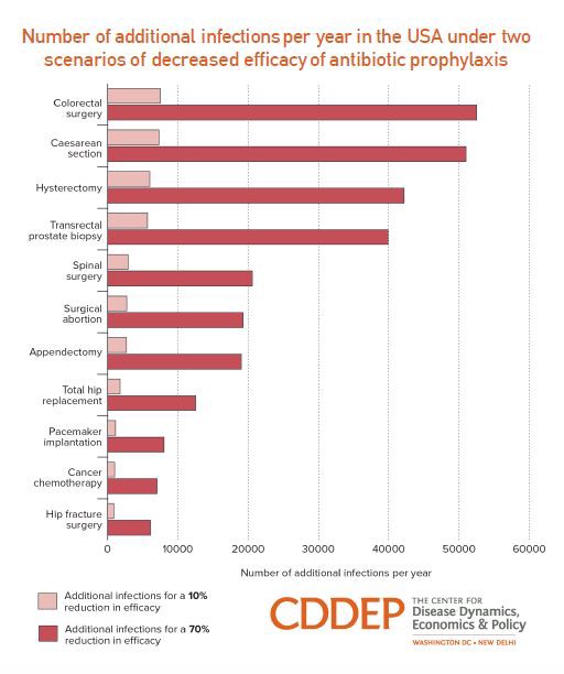 The recent study, published in the latest issue of the medical journal The Lancet, predicts nearly 120,000 infections and 6,000 deaths over a seven-year span in a scenario in which antibiotic effectiveness falls by 30 percent. To reach this conclusion, researchers analyzed the findings of hundreds of clinical trials, involving the 10 most common surgical procedures, and calculated trends in antibiotic potency over the past seven years.