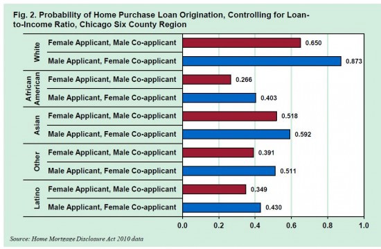According to a new study from the Woodstock Institute, banks discriminate on the basis of both gender and race when they make decisions about which loans they’ll approve. That goes for both mortgage applications and refinancing loans, and it’s worst for African American women: