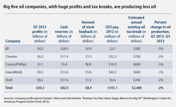 Despite the severe budget cuts facing many middle-class programs, the five biggest oil companies continue to rake in tens of billions of dollars in profits, while still receiving unnecessary and wasteful tax breaks.