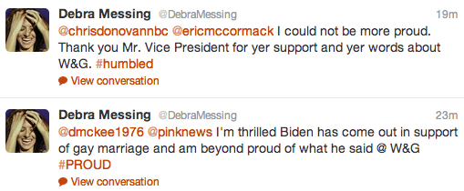 BIDEN: Look, I am Vice President of the United States of America. The president sets the policy. I am absolutely comfortable with the fact that men marrying men, women marrying women and heterosexual men marrying women are entitled to the same exact rights. All the civil rights, all the civil liberties. And quite frankly I don’t see much of a distinction beyond that. […] I think Will & Grace probably did more to educate the American public than almost anything anybody has done so far. People fear that is different and now they’re beginning to understand.
