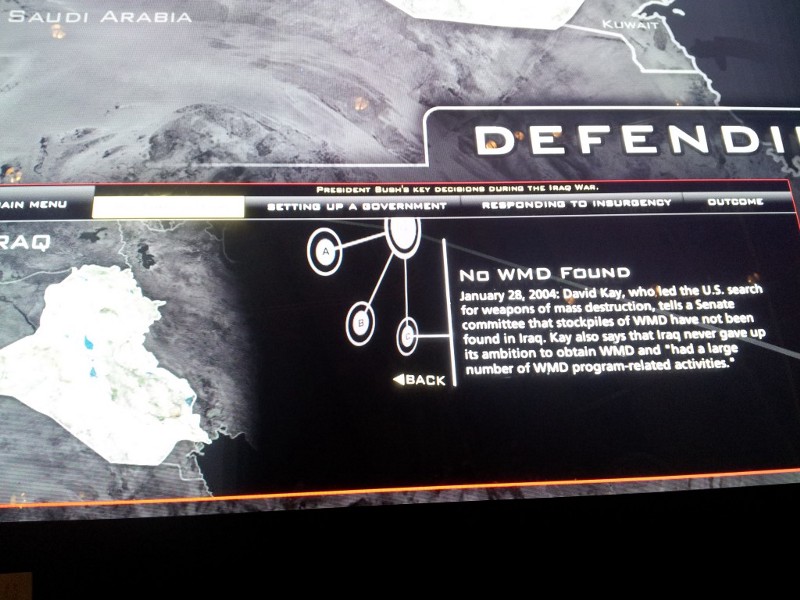 Finally, a document in the interactive detailed the WMD situation in Iraq, telling users that “Saddam wanted to recreate Iraq’s WMD capability” because he saw significant “value” in possessing WMDs.