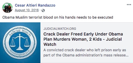 On the Facebook account that is believed to belong to the suspect and has now been taken down, Obama was called the “N-word” multiple times and one post said “Obama Muslim terrorist blood on his hands needs to be executed.”