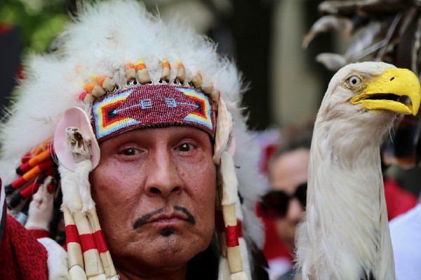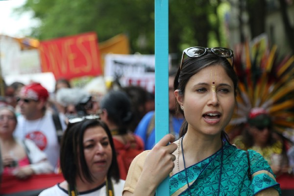 The procession was led — literally — by indigenous activists, who marched in a section at the front of the march for people who are facing the most dramatic effects of environmental degradation. Indigenous people have played a key role in recent fights over fossil fuel infrastructure — most notably the Standing Rock Sioux, who organized a months-long protest against the Dakota Access pipeline.