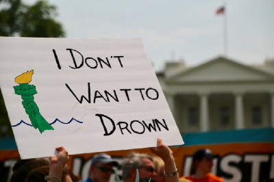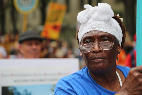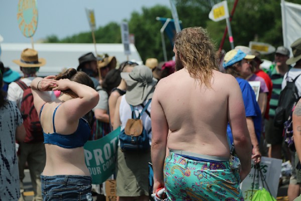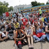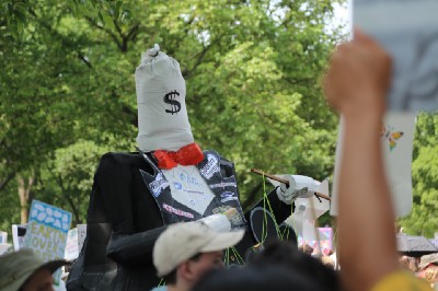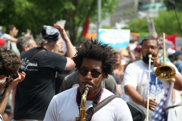 The DC government issued a hyperthermia alert in the late afternoon as temperatures spiked. Protesters took advantage of the numerous water stations along the march route to the White House. A few undressed to beat the heat.
