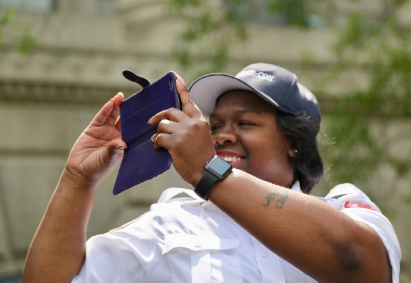 The mood on the mall was joyful. From drum circles to bagpipes to brass bands, musicians kept the crowd energized as the sun beat down.
