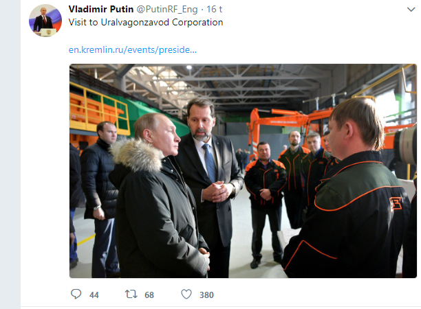 We suspended @putinRF_eng for impersonation based on a valid report we received from Russian officials. Our impersonation policy can be found here: https://t.co/PIBC4nGI8H