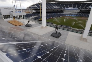 Elsewhere, Safeco Field in Seattle recently installed 168 solar panels and electric vehicle charging systems. In St. Louis, at Busch Stadium, the Cardinals put in 106 new solar panels which can produce about 37,000 KWh per year. In Pittsburgh, the “Let’s Go Bucs. Let’s Go Green” program at PNC Park promotes recycling, conservation, and awareness: