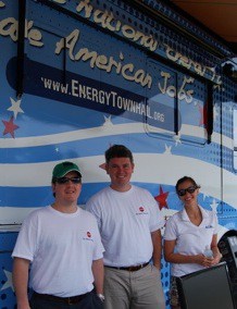 The American Energy Alliance, which is affiliated with the conservative Institute for Energy Research, has begun a four-week bus tour to county fairs, sporting events and public meetings in several coal-reliant states. Representatives of the group will travel in a large blue bus carrying the slogan “Stop the National Energy Tax, Save American Jobs” and a picture of workers in hard hats. They will cross Pennsylvania, Ohio, Indiana, West Virginia and Virginia. Yesterday, AEA officials participated in a rally with another group, Americans for Prosperity, in Zanesville, Ohio; a day earlier, they visited a county fair in western Pennsylvania.