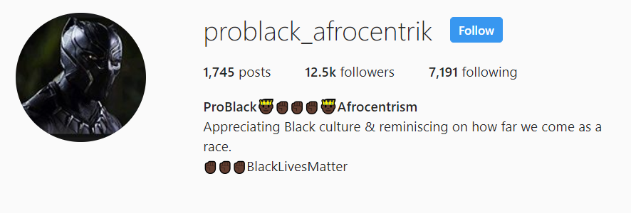 Another popular page was “ProBlack Afrocentrism,” which also appeared to aim at African-Americans. With a #BlackLivesMatter hashtag in its bio and the Black Panther as its profile picture, the page racked up some 12,500 followers. The page, “Dope Blackness,” had even more, with over 35,000 following.