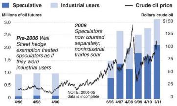 — 2008: Rampant oil speculation spikes prices to unprecedented levels. As academics from the Peterson Institute, the James Baker Institute at Rice University, and others conclude, non-commercial speculators begin to dominate the market, forcing up prices. Although the evidence was abundant that speculators caused the massive price spikes during the summer of 2008, regulators were toothless to act. A bipartisan majority in the House overwhelmingly passed legislation to award powers to the CFTC to oversee rampant oil speculation, but Republican in the Senate — acting with help from Koch lobbyists — killed the bill, called the Energy Markets Emergency Act.