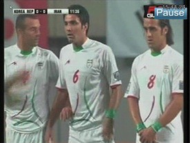 According to the pro-government newspaper Iran, four players — Ali Karimi, 31, Mehdi Mahdavikia, 32, Hosein Ka’abi, 24 and Vahid Hashemian, 32 — have been “retired” from the sport after their gesture in last Wednesday’s match against South Korea in Seoul. […] Karimi is one of Iranian football’s best-known stars, having played for the German club Bayern Munich. Ka’abi played for Leicester City for several months during the 2007/8 season. Hashemian and Mahdavikia play for the German teams Bochum and Eintracht Frankfurt. […] Iran’s hardline media have since linked the protest to the arrest on Saturday of Mohsen Safayi Farahani, who headed the country’s football governing body under the former reformist president, Mohammad Khatami. He is one of several dozen opposition politicians, intellectuals and journalists to have been detained.