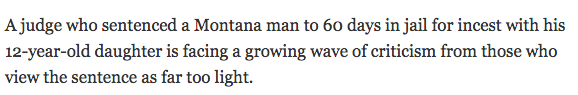 A New York Times story was published on Friday morning with this stunner of a headline: “Montana Judge Criticized for 60-Day Sentence for Man Who Has Sex With His Preteen Daughter.”