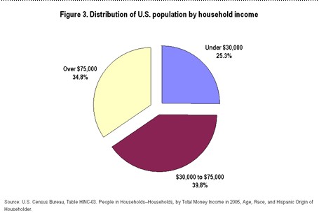 One thing you could say on behalf of the Stossel/ThirdWay approach is that the ideal of a married household ages 25–59 encompasses the very essence of middleclassitude and everyone else doesn’t really count. Thus it turns out that the average middle class family makes about $75 grand a year. But all that follows from this, if you look at the chart above, is the conclusion that the United States doesn’t qualify as a “middle class” society. Instead, perhaps, we’re a country like Pakistan or Brazil (SEE CORRECTION BELOW) where there’s a tiny hyper-wealthy elite such that one percent of the population monopolizes 20 percent of the income, then there’s a larger middle class, and then a broad majority of the population that has a sub-middle class standard of living.