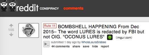1) BOMBSHELL- From DECEMBER 2015–The word LURES is redacted by FBI but not OIG