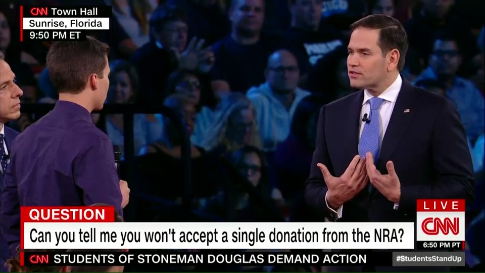 During another part of Wednesday’s town hall, Rubio — who has received $3,303,355 from the NRA in campaign contributions since took office in 2012 — indicated he’s now at least open to considering restrictions on “magazine clip size.” Even that would be helpful, as research indicates that a key provision of the successful 1990s assault weapons ban was its ban on high-capacity magazines holding more than 10 rounds.