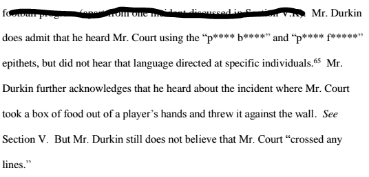 Last week, a nearly 200-page report detailed many ways in which Court was verbally and at time allegedly physically abusive to players. And it also detailed ways in which Durkin was directly complicit in that behavior. He witnessed Court bullying players, but did not believe Court “crossed any lines.”