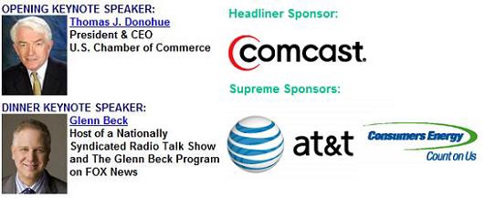 The top sponsors of the Michigan event are Comcast, AT&T;, and Consumers Energy. AT&T; is on the board of the Chamber of Commerce but has pulled its ads from Glenn Beck’s show. Other Chamber members who have stopped advertising on Beck — but are giving him a platform in Michigan — include Aegon, CVS, State Farm Insurance, and UPS.