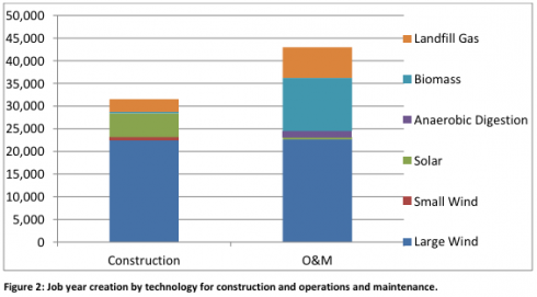 These new jobs would last, too. “Jobs” are defined as full job years in the study, meaning full employment for one person at 2,080 hours in a 12-month span. Operations and maintenance jobs are calculated to last for a 20–30 year duration.