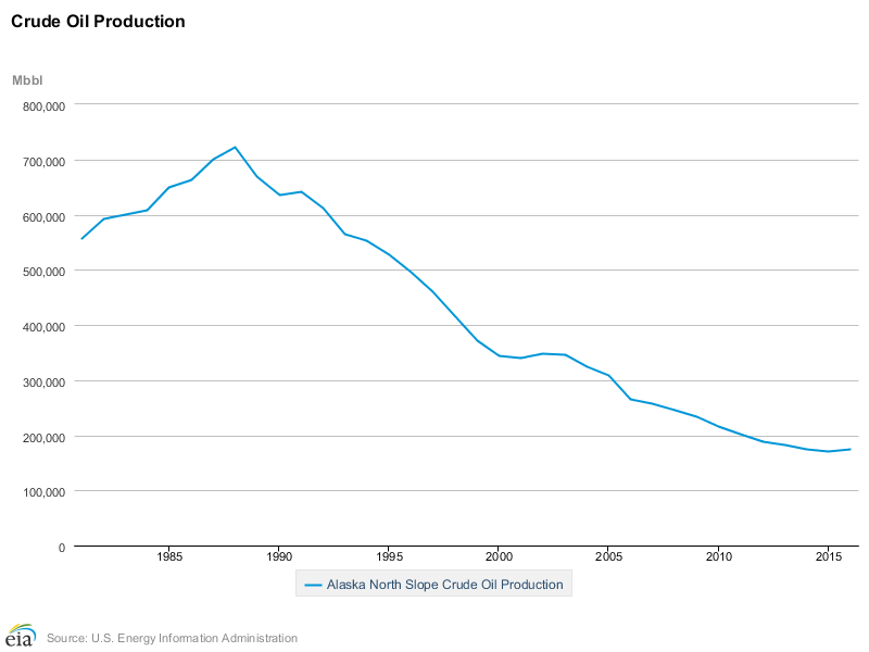 This region of the North Slope is sandwiched between the Arctic National Wildlife Refuge and the National Petroleum Reserve-Alaska. While it was not included in the Obama administration’s wide-sweeping restriction on oil drilling in the Arctic, which was issued in 2016 and covered 98 percent of U.S.-controlled Arctic waters, the region has nonetheless seen declining oil production since the late 1980s.