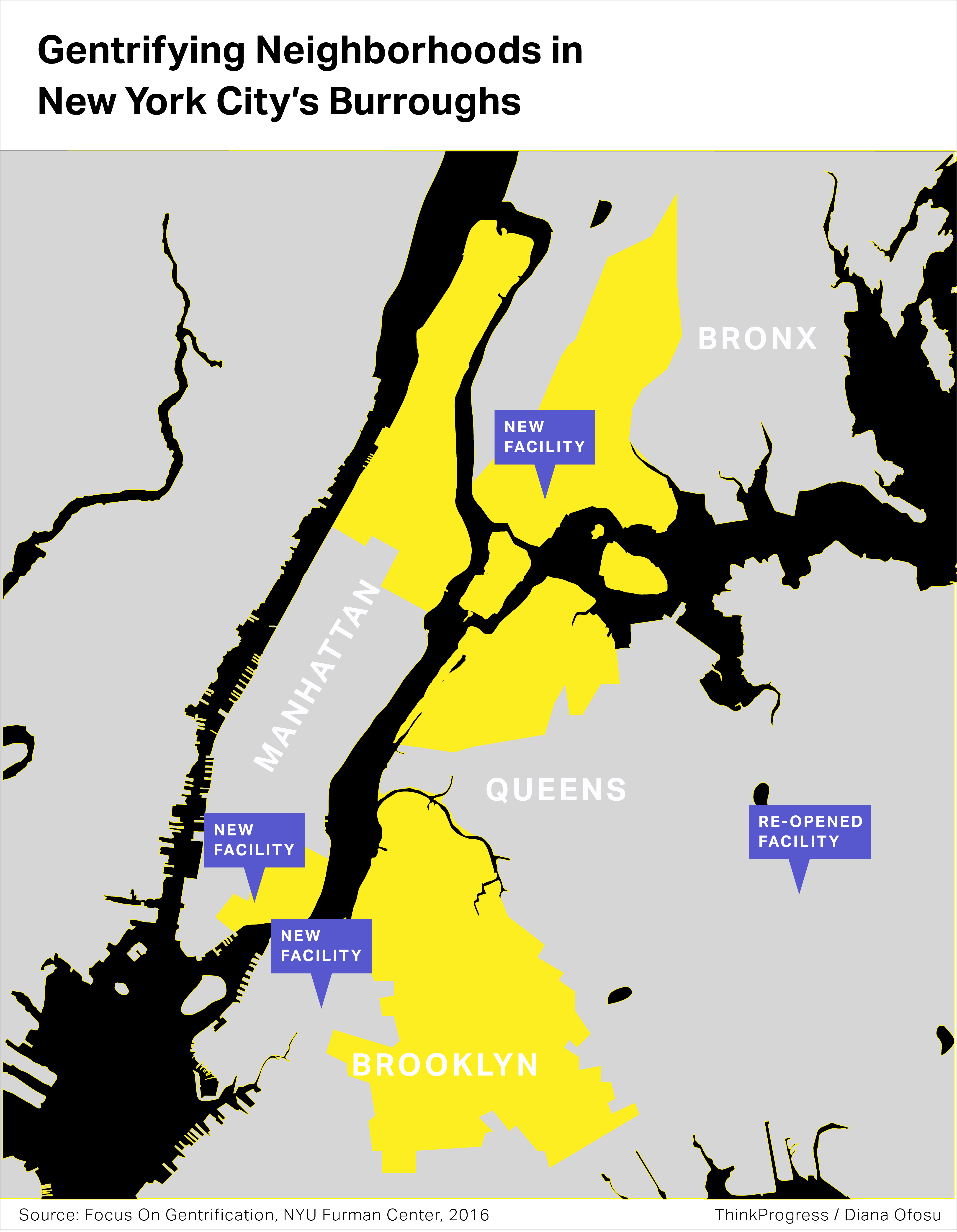 The four proposed facilities will be located in the Bronx at 320 Concord Avenue, in Brooklyn at 275 Atlantic Avenue, and in Manhattan’s Chinatown at 80 Centre Street. A fourth facility in Queens at 126-02 82nd Avenue will also be re-opened after closing 15 years ago.