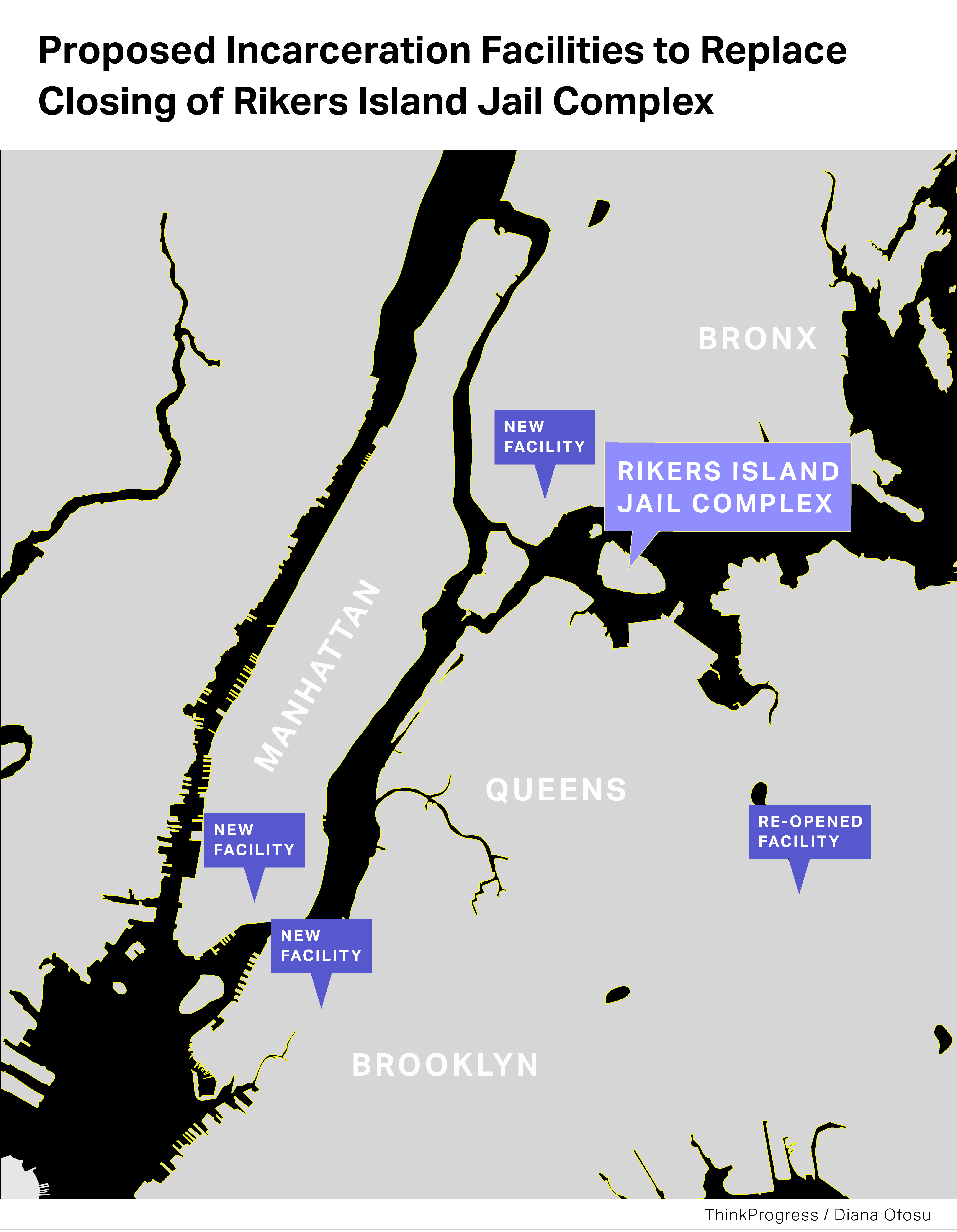 The four facilities will, in essence, act as replacements for those currently on Rikers Island. Each of the new facilities will have approximately 1,500 beds to house around 5,000 inmates total — the city’s incarcerated population goal. In an email to ThinkProgress, the mayor’s office explained the facilities would be housed in mixed-use buildings featuring retail space, and will have better lighting, designed with both inmates’ and employees’ safety in mind.