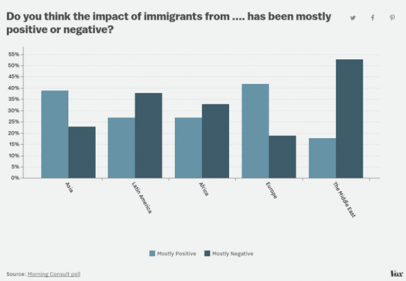 But according to the poll commissioned by Vox in partnership with Morning Consult, a nonpartisan media and technology company, American voters are worried about immigrants mostly because they have racialized fears of crime and terrorism.