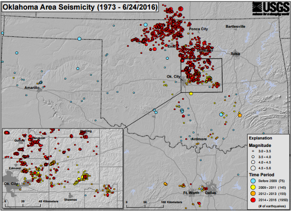 According to a site set up by the state, “Oklahoma state agencies are not waiting to take action.” The OCC has been changing its wastewater directives “based on the general view that injection of disposal of wastewater into the basement rock presents a potential risk for triggering seismicity,” it says.
