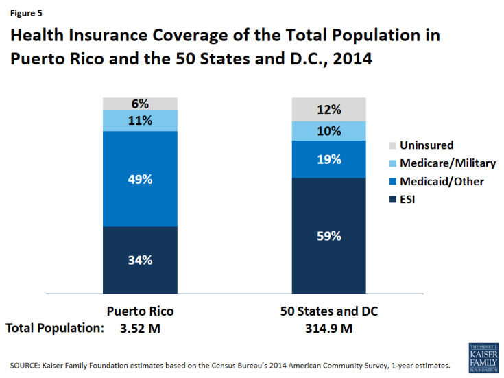 Given the high unemployment and poverty rates, almost half of Puerto Ricans are covered by Medicaid, a program that provides insurance to low-income, elderly, and disabled persons. The territory — that’s long struggled financially and declared bankruptcy in May — receives less Medicaid federal funds than all other 50 states and District of Columbia.