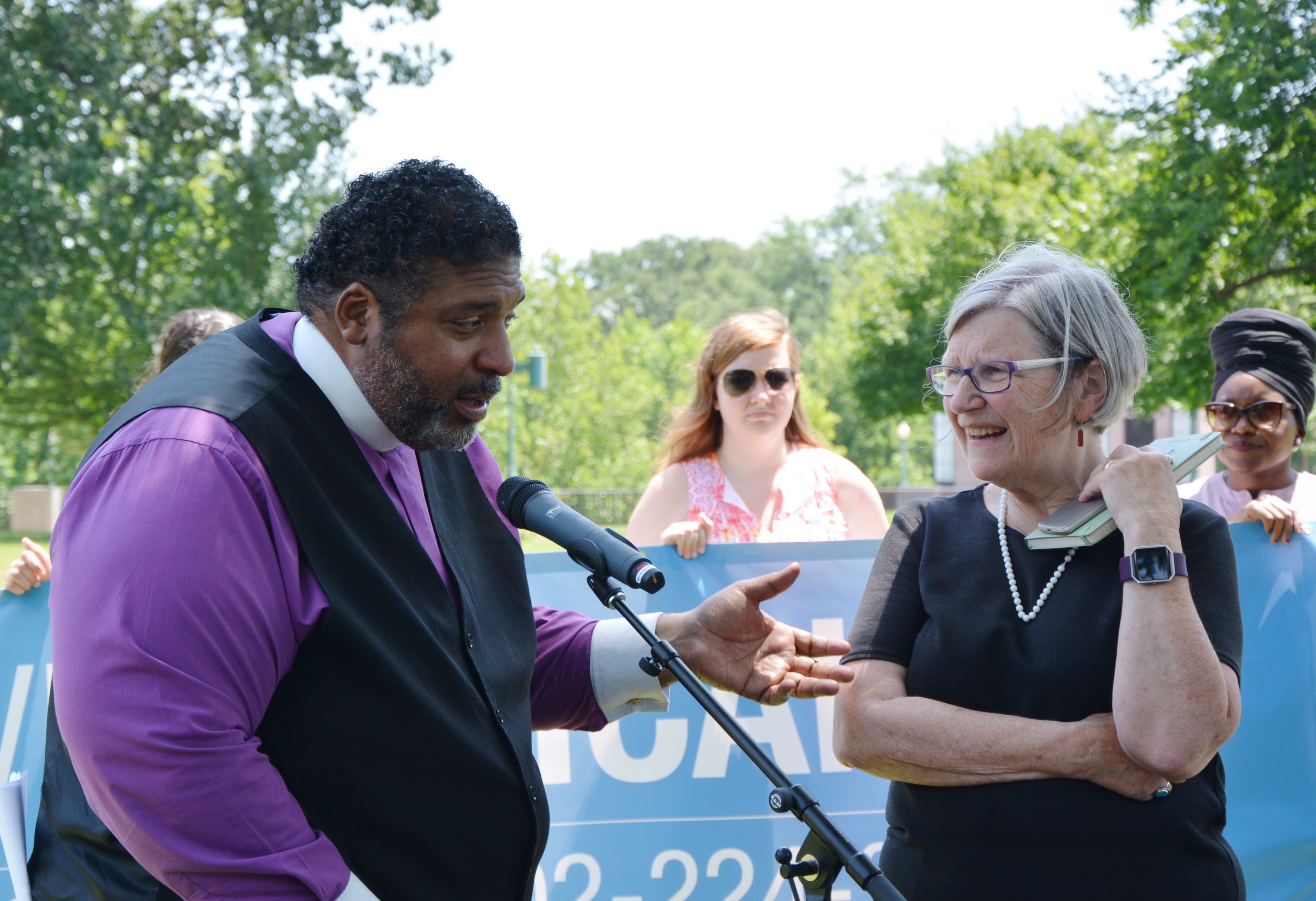 Among fellow leaders of the Religious Left, she’s heralded as an organizing powerhouse. Roughly a week after our interview, Campbell was standing in front of the U.S. Capitol Building, playing emcee to a rotating band of faith leaders and politicians who were there to blast the GOP health care bill. In addition to politicians like Minority Leader Nancy Pelosi, the lineup included Rev. William Barber II, a rising star among progressives who led the Moral Mondays movement in North Carolina and spoke at last year’s DNC.