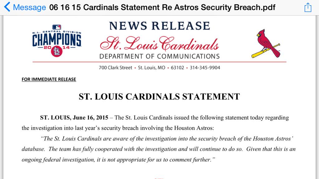 The case is considered the first known instance of corporate espionage involving professional sports and it becomes even more shocking considering the profile of the team involved — the Cardinals currently have the best record in baseball and a long history as one of the most successful and supported teams.