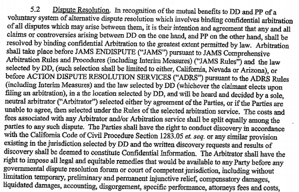 Note that this provision provides for a “voluntary system of alternative dispute resolution” between “DD on the one hand and PP on the other hand.” (DD is a pseudonym for Donald Trump and PP is a pseudonym for Stormy Daniels.) It does not talk about arbitration rights for “EC,” the shell corporation set up by Michael Cohen. Yet, it was “EC” that is listed as the claimant in the arbitration.
