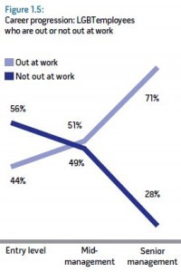 – 52 percent feel stalled in their careers (compared to only 36 percent of those out).- Only 48 percent feel satisfied with their rate of advancement (compared to 64 percent of those out). They are significantly less likely to achieve senior management positions.- They are 73 percent more likely to say they’ll leave their companies within the next three years.- They are 75 percent more likely to feel isolated at work; even moreso if they are men.- They are more likely to perceive the work environment as hostile and 40 percent less likely to trust their employer.