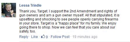 “This is a complicated issue,” Mulligan wrote, “but it boils down to a simple belief: Bringing firearms to Target creates an environment that is at odds with the family-friendly shopping and work experience we strive to create.”