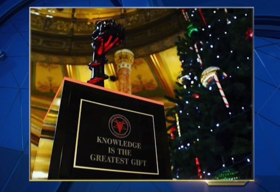This year, the Illinois state capitol rotunda will feature a diversity of religious displays, including a Nativity scene, a menorah, and a statute depicting the hand of Eve offering the fruit of the Tree of Knowledge of Good and Evil. The last display is sponsored by the Satanic Temple, and it features the message “KNOWLEDGE IS THE GREATEST GIFT.”