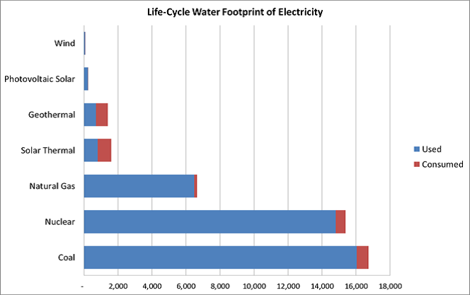 One nuclear reactor uses 35–65 million litres of water each day. Large mounts of water are also used in the uranium mining process.