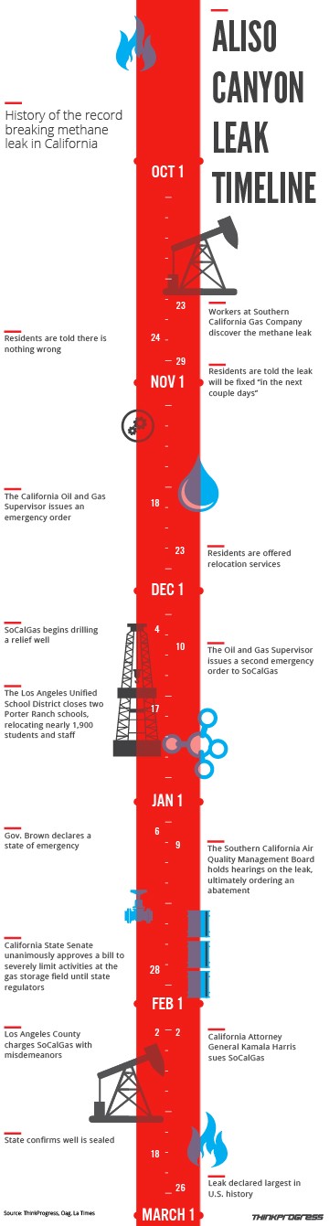 SoCalGas, though, has said that its maintenance of the wells at Aliso Canyon didn’t actually violate any standards of upkeep. It doesn’t matter, for instance, that a safety valve on the failed well was removed in the 70s and never replaced, because there is no legal requirement for an emergency safety valve.