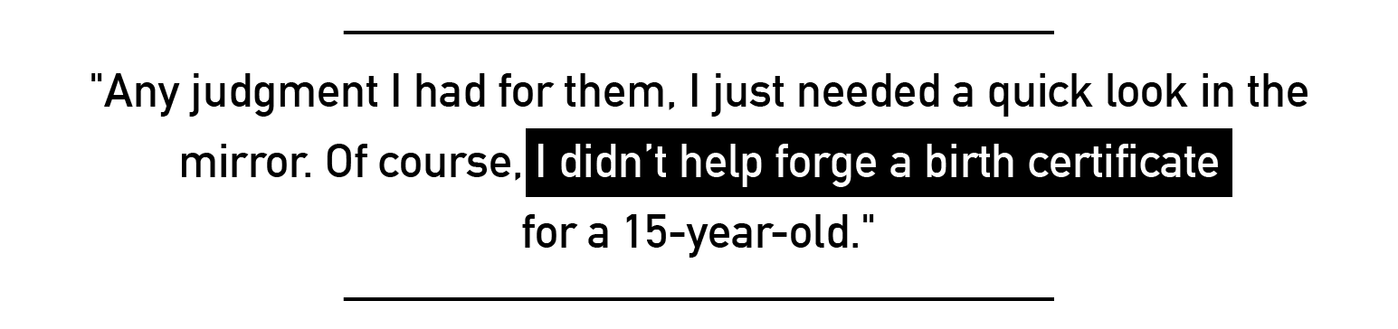 Of course, I didn’t help forge a birth certificate for a 15-year-old.