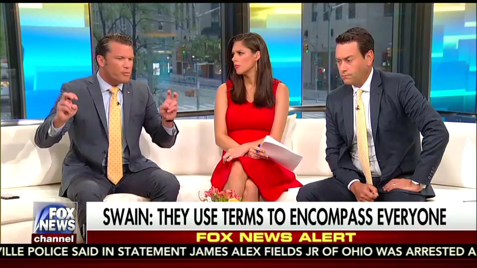 On Fox & Friends, co-host Pete Hegseth claimed that “violent aspects of Black Lives Matter ought be called out” during a segment of the show’s Sunday edition. Across social media, people equated the group with violent white supremacist factions, insisting that both sides were to blame. On Wednesday, right-wing filmmaker Dinesh D’Souza claimed outright that “alt-left terrorist[s]” associated with Black Lives Matter were “just as dangerous–if not more–than any white nationalist.”