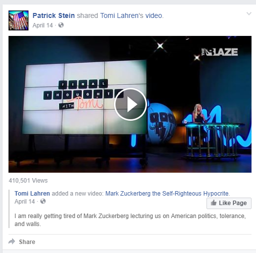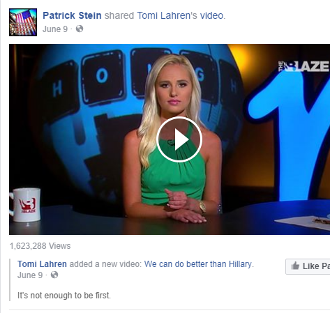 But Stein also appears to have been a huge fan of Fox News contributor Tomi Lahren, according to his Facebook page. In 2016, Stein shared a number of videos from Lahren, including one where she complained about being “lectur[ed]” about “tolerance.”