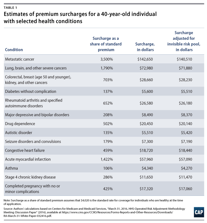 A new paper by the Center for American Progress’ Sam Berger and Emily Gee examines just how much insurers are likely to jack up premiums for various conditions. (Disclosure: ThinkProgress is an editorially independent site housed at the Center for American Progress.) According to Berger and Gee’s analysis, the numbers are grim.