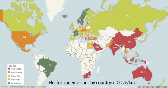 The orginal purpose of the map is to show where electric car charging ends up using the most low-carbon electricity, and the data reflect that. Each country has a number attached to it, which is the number of grams of carbon dioxide equivalent per kilometer. This means how much CO2 is emitted per kilometer traveled. It takes into account vehicle manufacturing carbon emissions as well, though that number is held constant in each country.