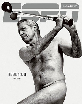 From the start, the Body Issue took a more professional and artistic approach to its subject than the Swimsuit Issue produced by ESPN’s top competitor, Sports Illustrated. For one, it centers around athletes, not supermodels, so the bodies, even if otherworldly, seem healthier and less prone to damaging stereotypes. And it has always displayed different types of bodies. The first issue featured Sarah Reinertsen, the first female amputee to complete the Ironman triathlon, with her prosthesis prominent in the photo. The 2013 version, which hits newsstands Friday and was partially released online today, features a pregnant Kerri Walsh and 77-year-old golfer Gary Player.