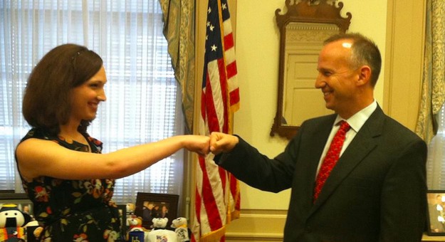 Sarah celebrating transgender equality in Delaware with Gov. Jack Markell (D).ZF: It’s kind of a tricky thing: We know that transgender people face extremely high rates of discrimination in employment, housing, and everyday services, and the general assumption is that more education, awareness, and visibility will help reverse that. So often, though, it feels like promoting that understanding requires rehashing a basic definition of “transgender,” which tends to focus mostly on the physical transition. From your own experience and work in trans activism, what are some of the defining aspects of reality that are unique to being trans but have nothing to with surgery or genitals?SM: I think the important part in defining what it means to be transgender is to focus on the identity part, not the physical transition. We need to challenge and move past the physical descriptors as there so many different ways of transitioning. Indeed, focusing on the physical transition reinforces some societal prejudices, i.e., that body, not mind, define gender, that have led to the marginalization of large parts of the transgender community.