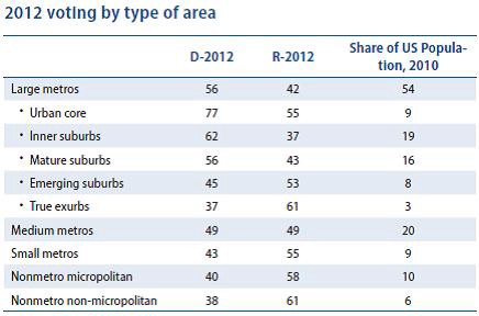 That’s the dark side of a pattern I commented on in a post a couple of months ago. The Democrats benefit on the Presidential level and in many states from dominating large dynamic metropolitan areas, particularly the most densely populated parts of those areas: